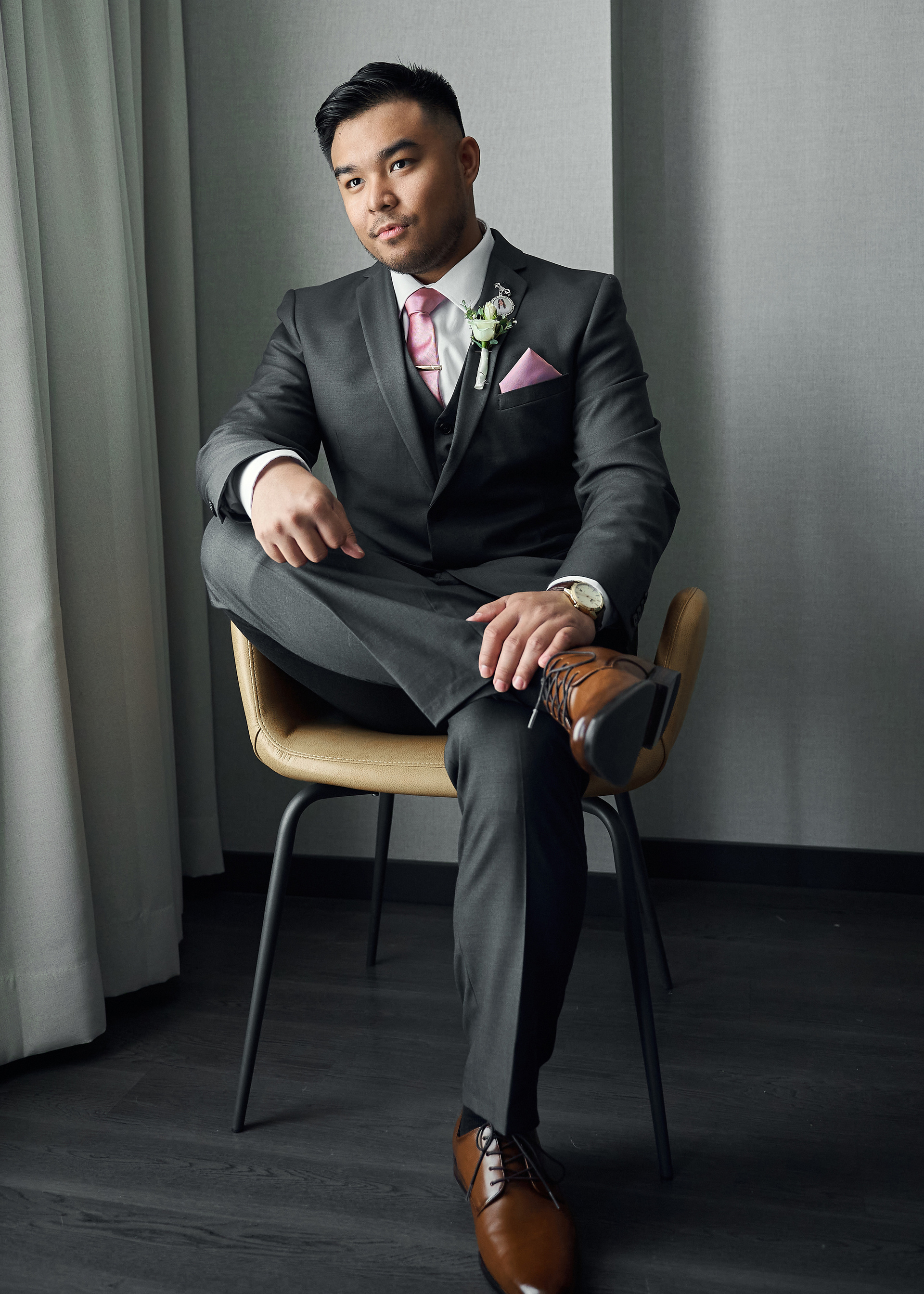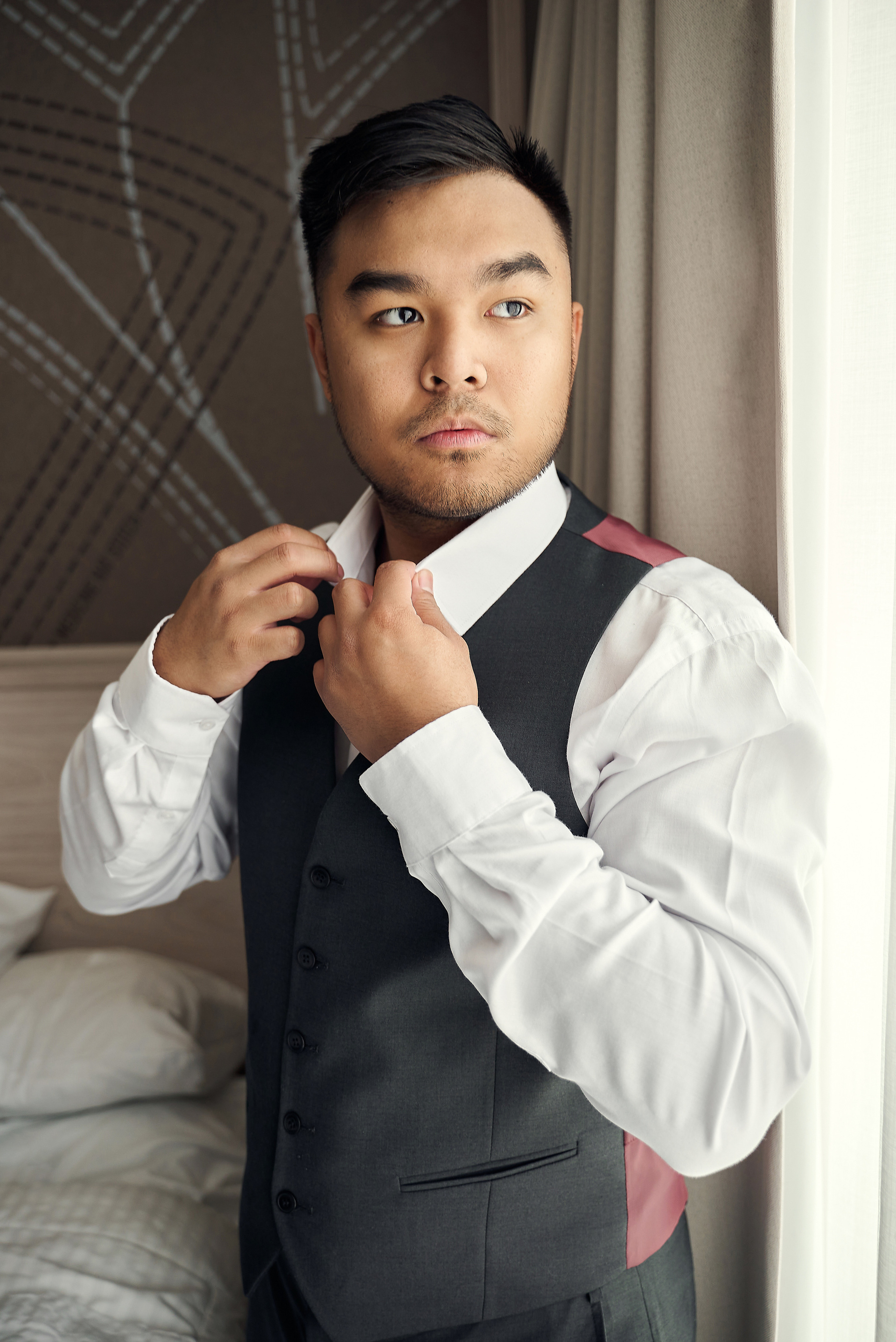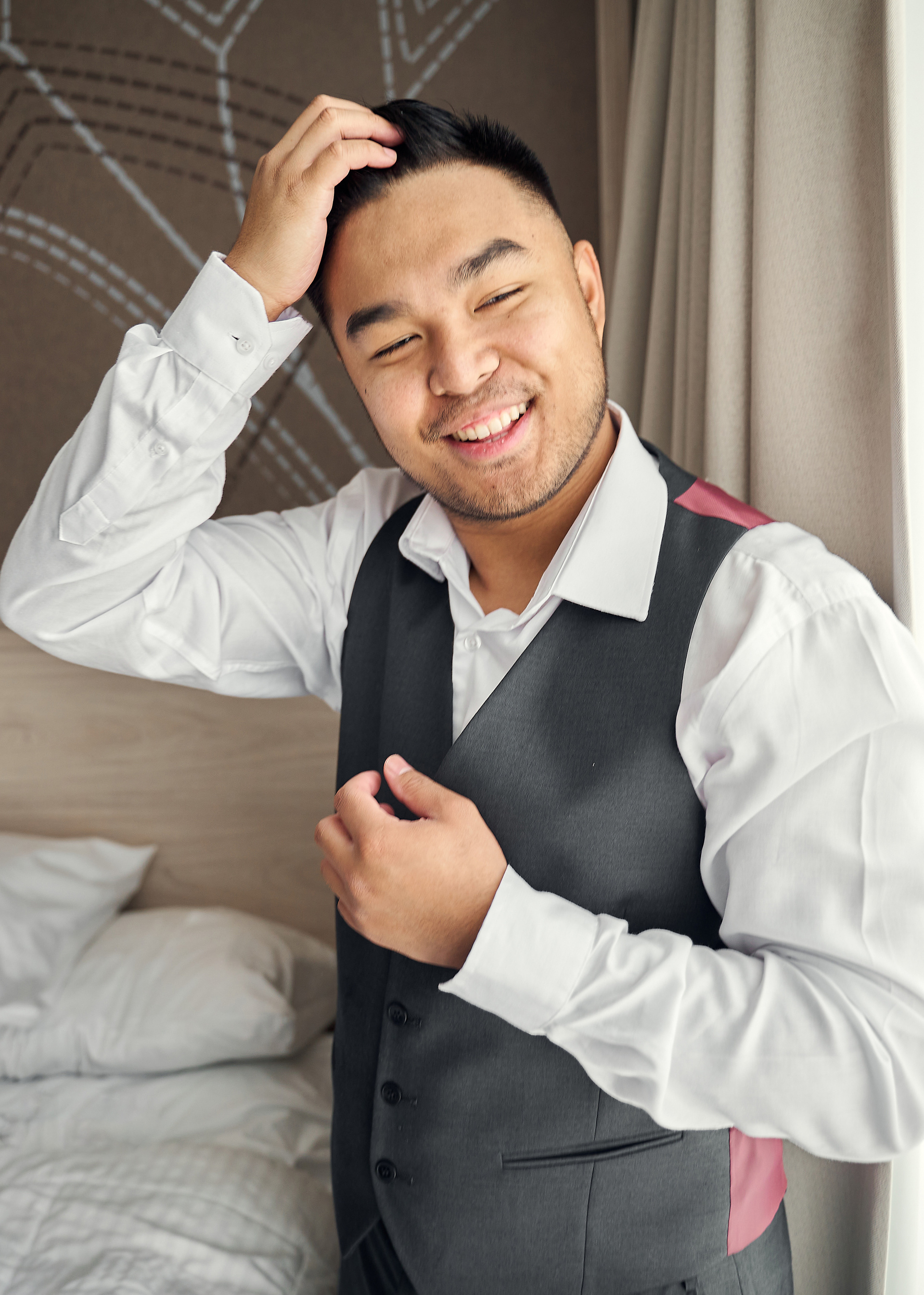 Bride and groom gettin ready at the Residence Inn by Marriott Calgary Downtown.