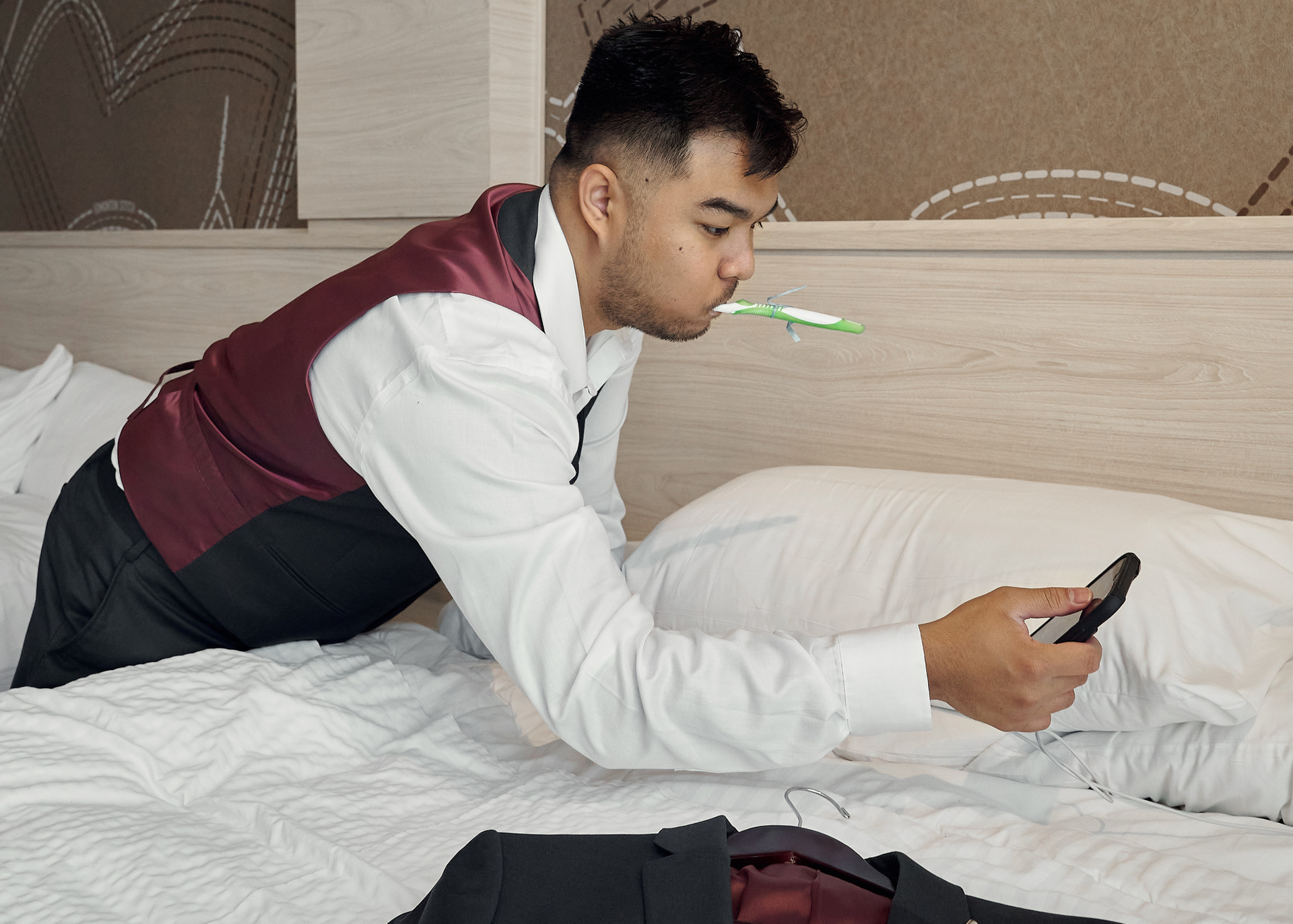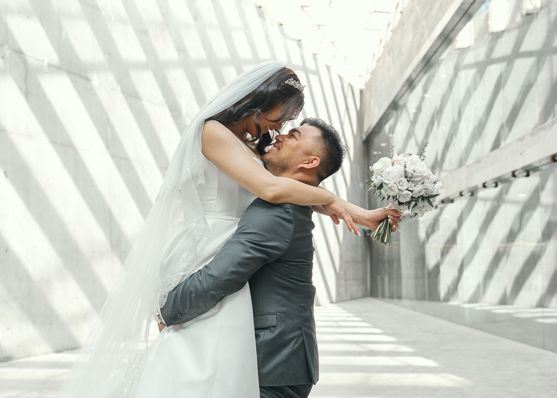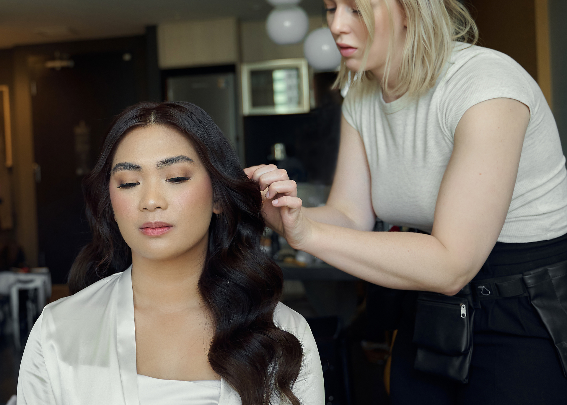 Bride and groom gettin ready at the Residence Inn by Marriott Calgary Downtown.